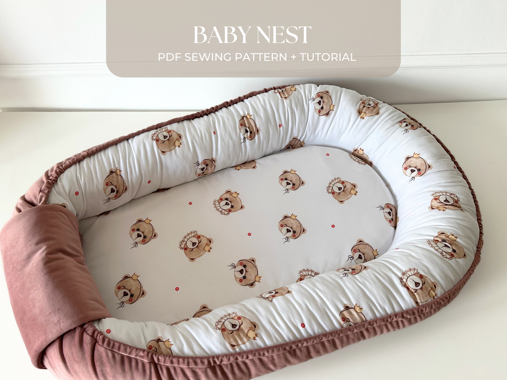 This digital pattern includes everything you need to sew your own baby nest, perfect for nap time, playtime, or on-the-go comfort.
