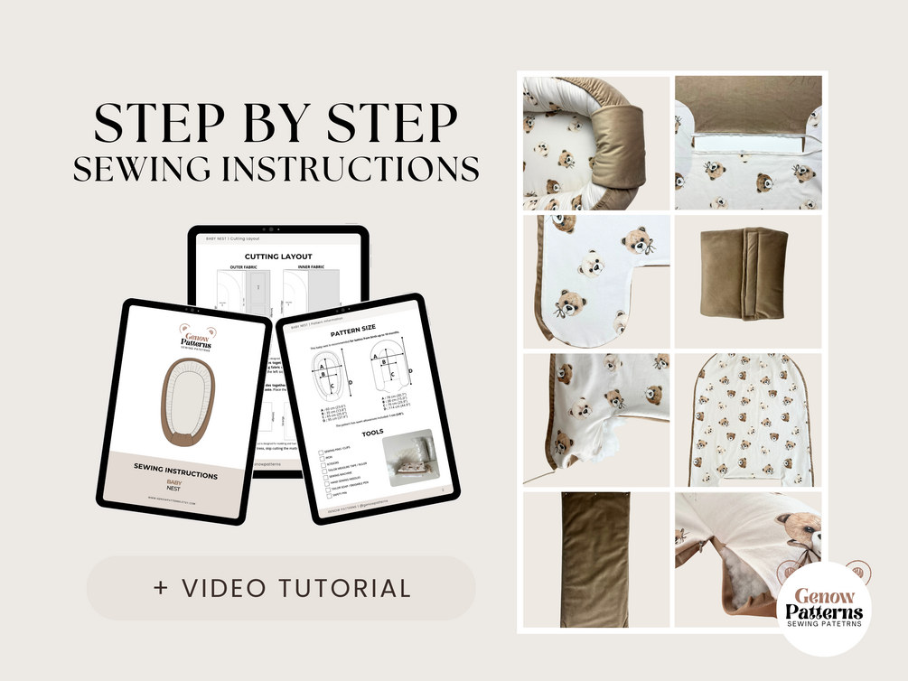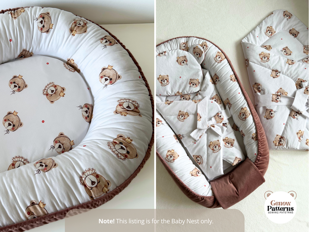 This digital pattern includes everything you need to sew your own baby nest, perfect for nap time, playtime, or on-the-go comfort.