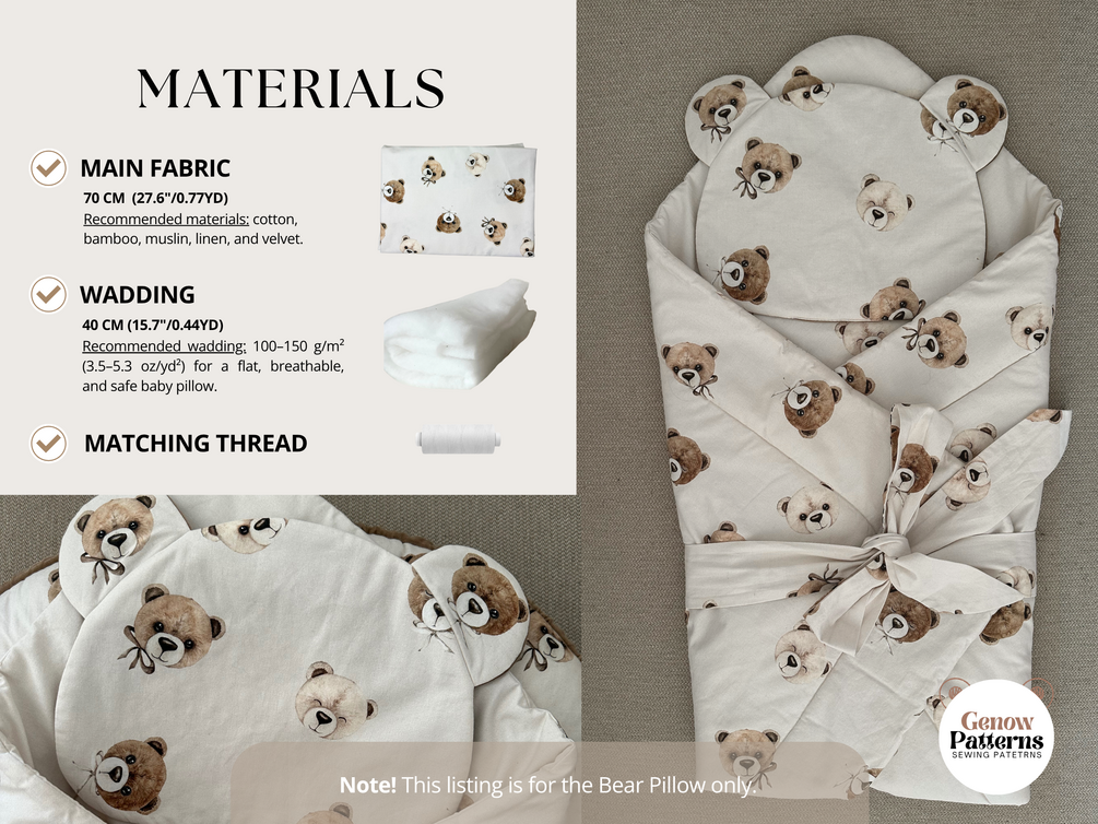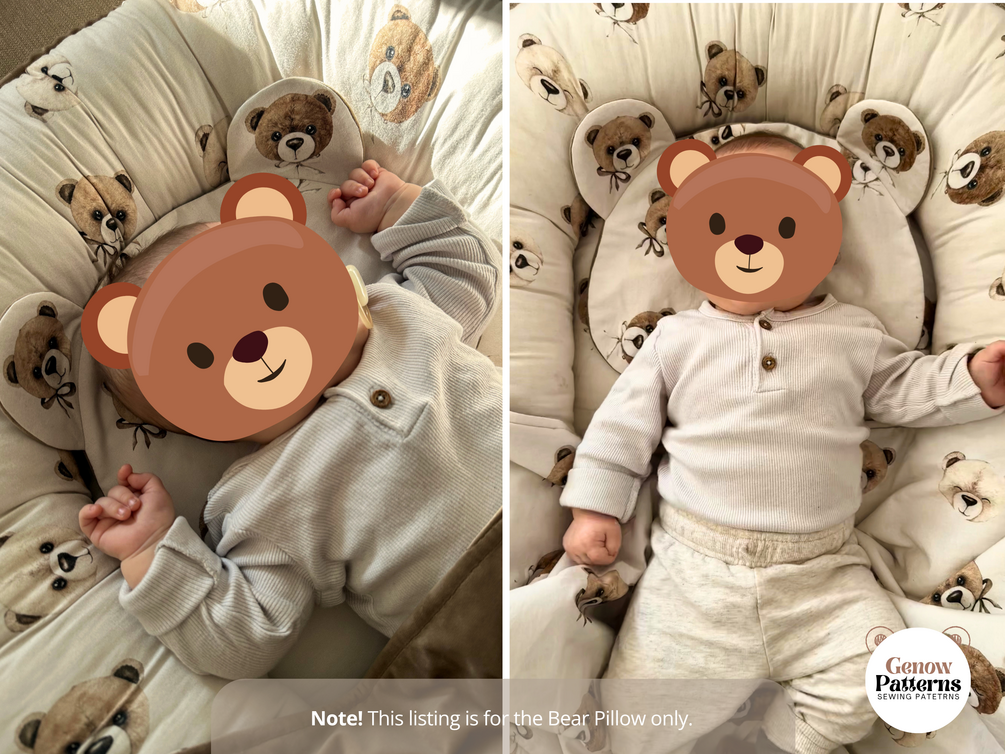 This digital pattern includes everything you need to sew your baby Bear Pillow, perfect for newborns and infants.