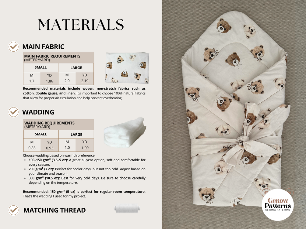 This digital pattern includes everything you need to create a soft, secure swaddle—perfect for nap time, cuddles, or calming your little one at home or on the go.